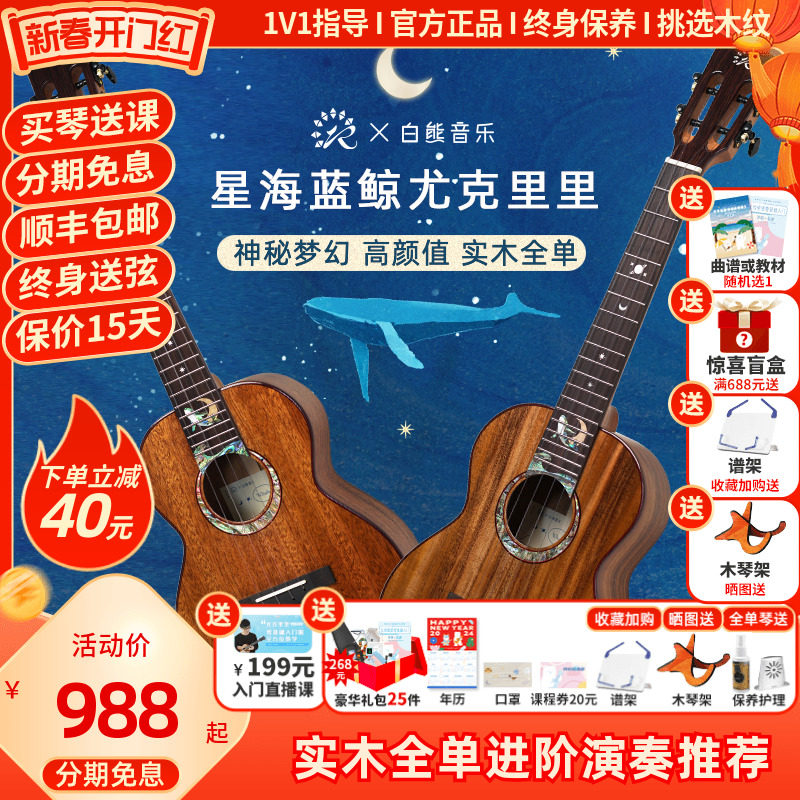 白熊音乐彩虹人桃花芯全单AC30相思木60电箱尤克里里初学进阶专业