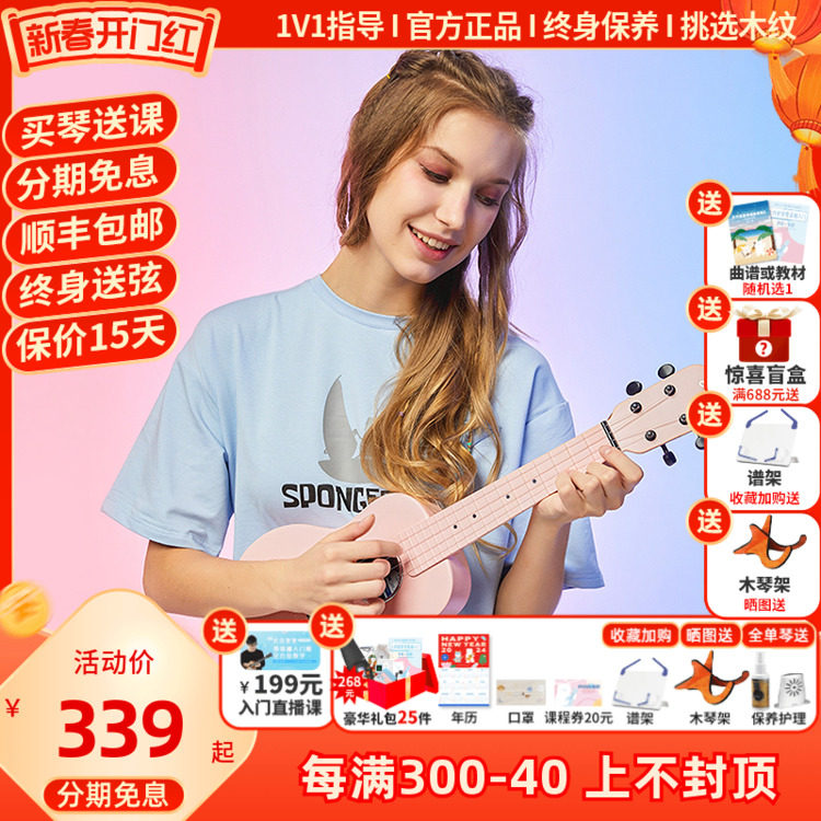趣弹尤克里里uku200c初学者女趣谈音乐桃花芯儿童23寸小吉他乐器