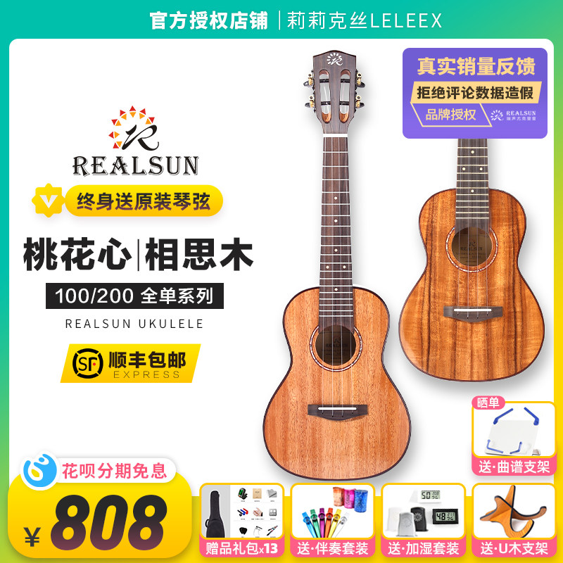 趣弹Realsun瑞声全单板尤克里里AC100/200桃花芯相思木23寸26寸AT