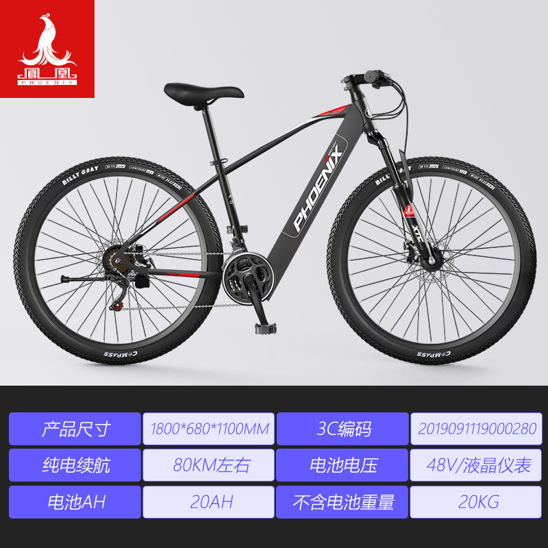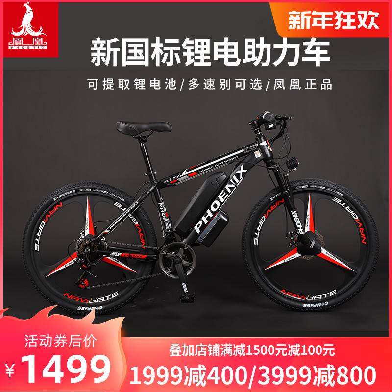 凤凰锂电池助力电动自行车男女双碟刹山地车新国标电动车48v山地