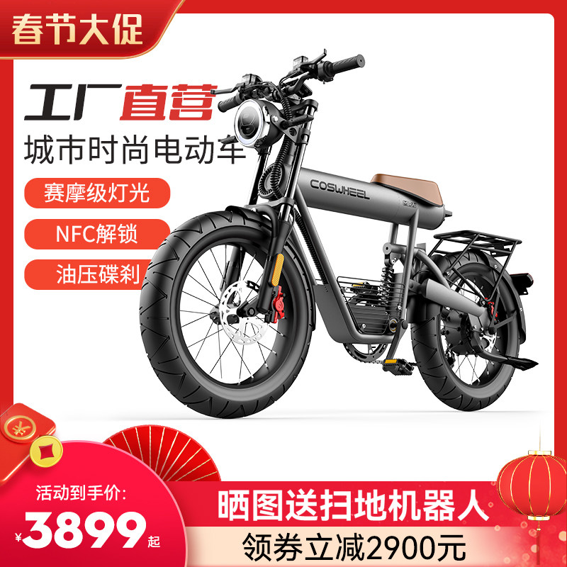 super73新款越野电动山地自行车雪地成人电瓶车锂电助力单车复古
