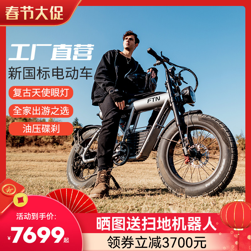 FTN新款低座T20s锂电池助力电动自行车复古山地车摩托车电单车