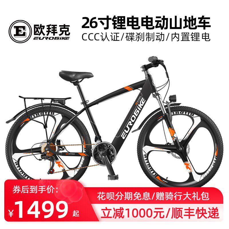 欧拜克电动自行车29寸48V锂电池碟刹400W男女越野电动山地车旅行