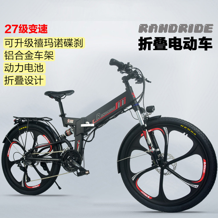 26寸折叠锂电电动自行车双碟刹锂电瓶双减震电动山地自行车