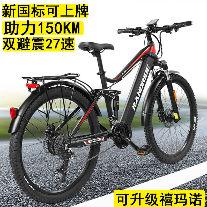 新国标电动变速山地车锂电助力粗宽胎雪地自行车男女公路电瓶单车