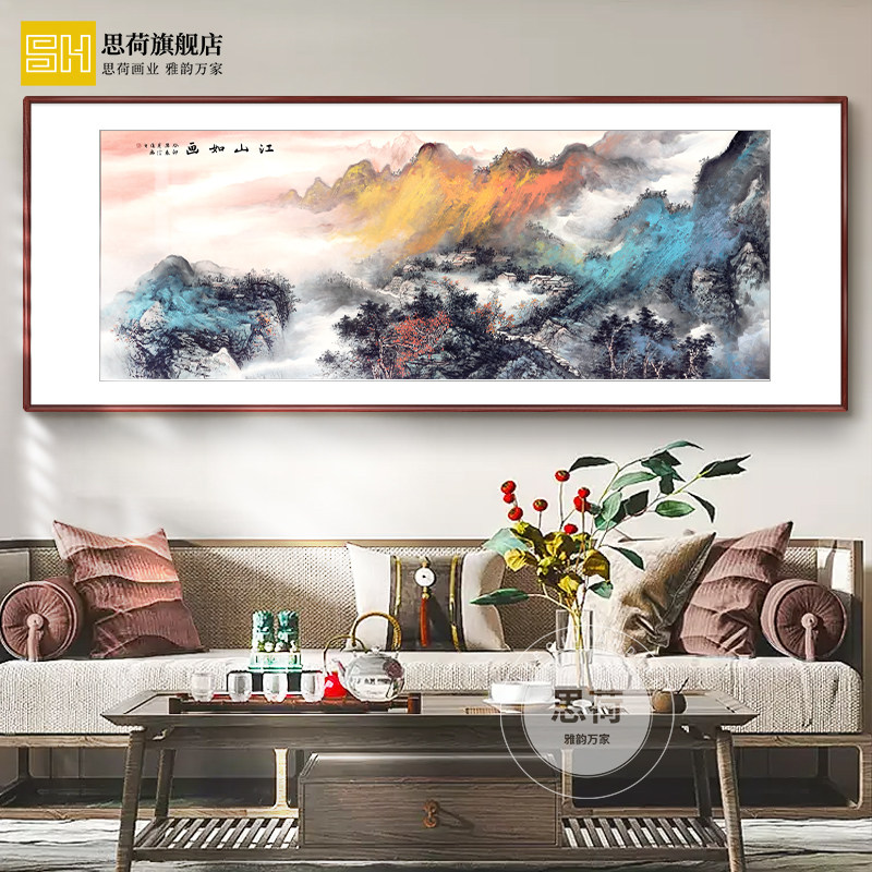 国画新中式客厅沙发背景墙字画办公室山水画靠山图挂画招财装饰画