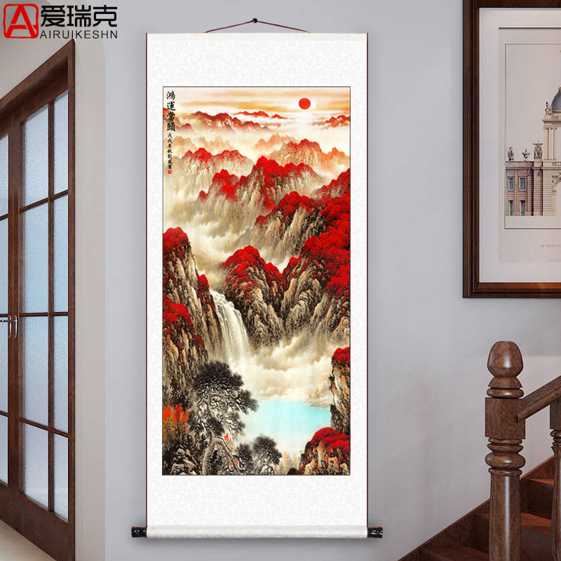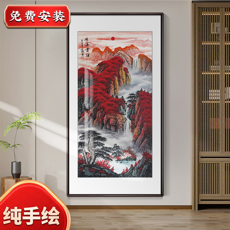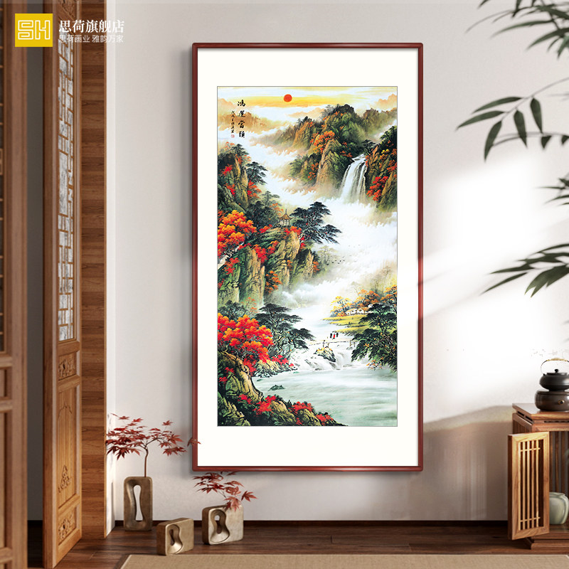 鸿运当头国画客厅装饰画沙发背景墙山水画办公室字画大气靠山挂画