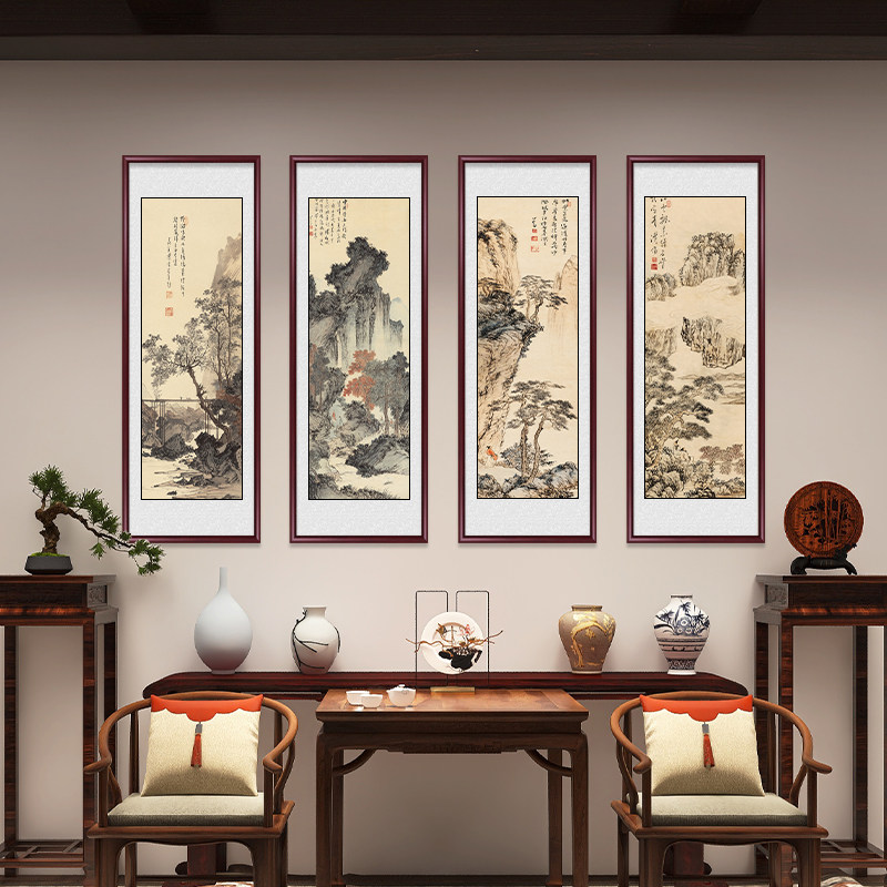 国画山水画四条屏中堂画客厅挂画新中式沙发背景墙壁画装饰画古画