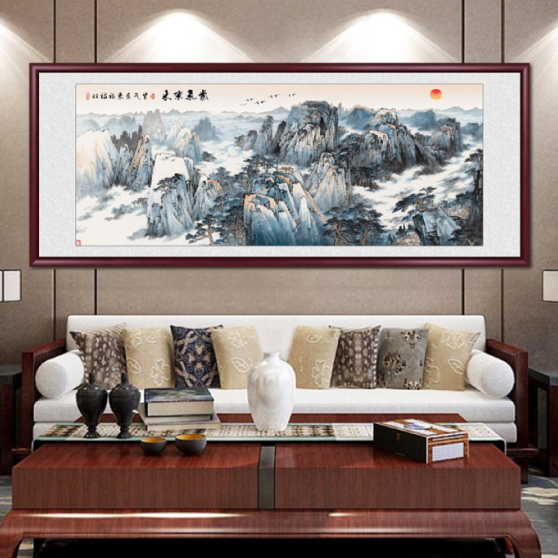 紫气东来山水画国画客厅挂画办公室装饰画靠山画新中式背景墙壁画