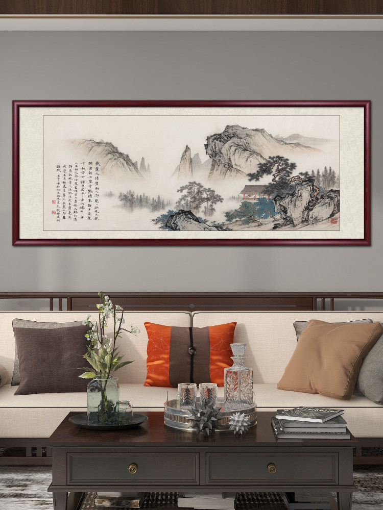 新中式横幅长条国画山水画客厅背景墙装饰画风景画办公室茶室挂画