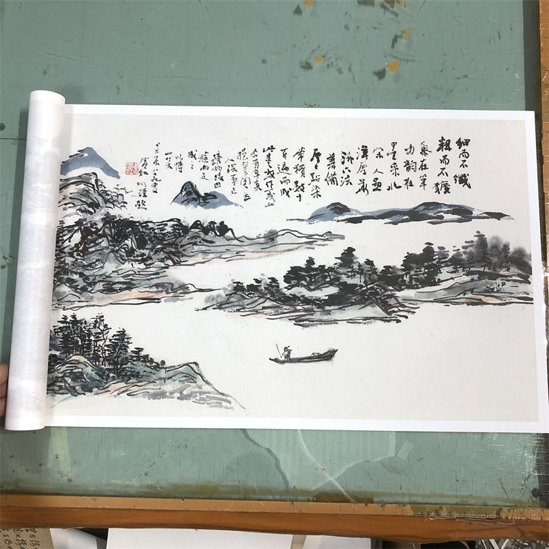 千里江山图卷轴挂画现代新中式靠山装饰画竖款茶室书房客厅山水画