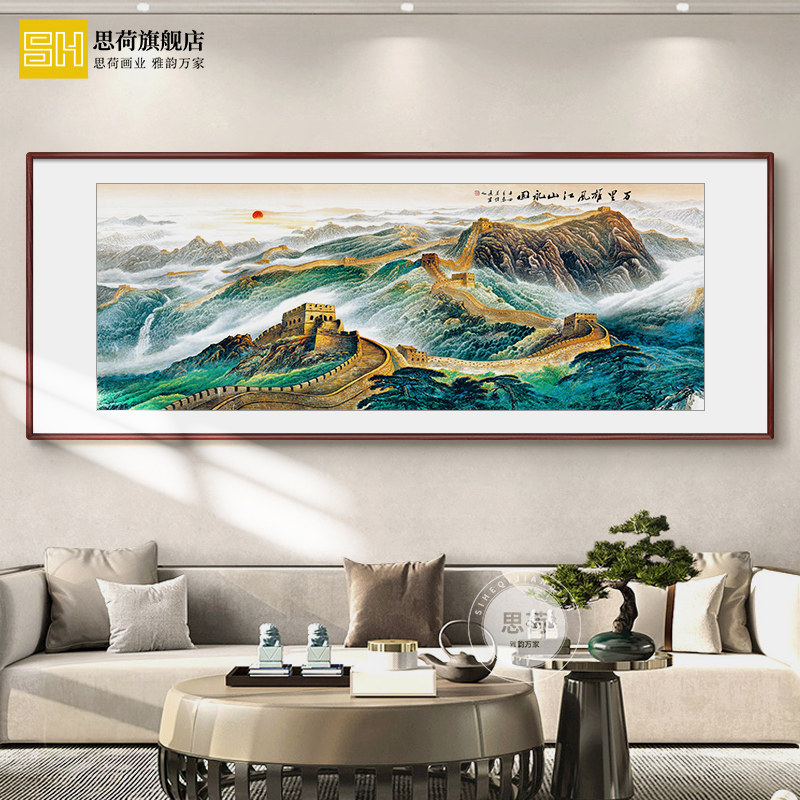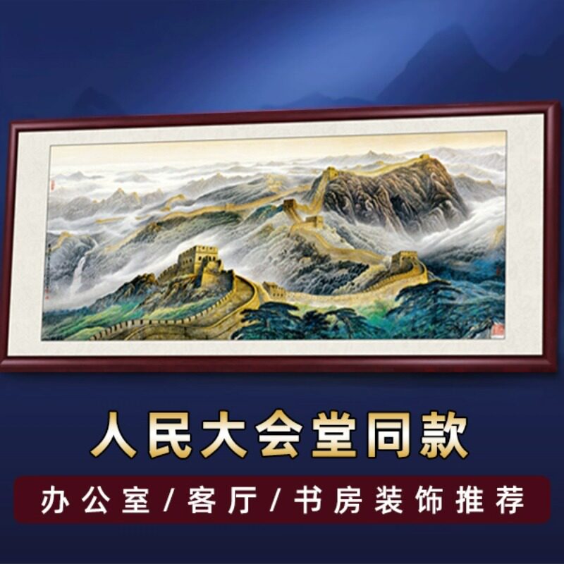 山水国画风水靠山挂画新中式万里长城图办公室字画客厅装饰背景墙
