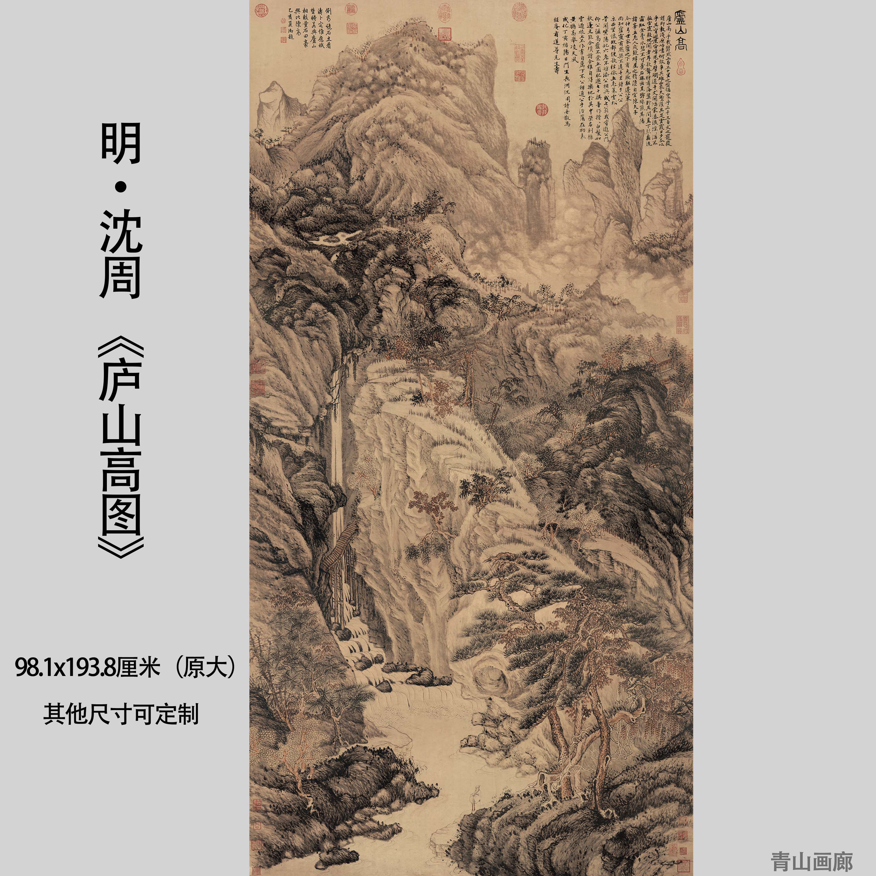 明沈周《庐山高图》复古水墨山水国画高清微喷装饰画挂画临摹范本