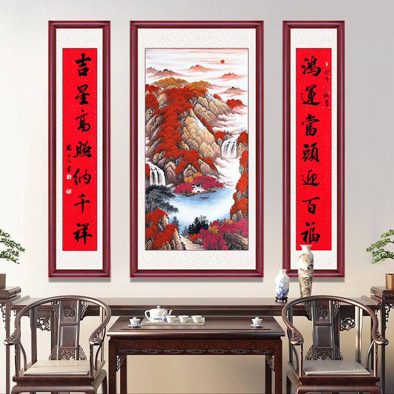 中堂画农村堂屋大堂挂画山水框画鸿运当头卷轴画国画五联对联客厅