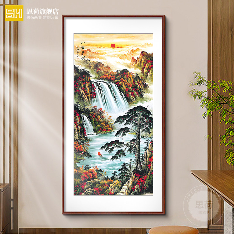 源远流长山水画手绘聚宝盆风水画客厅装饰画办公室国画西墙挂画