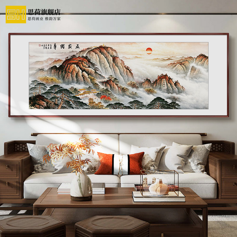 五岳独尊国画山水画客厅挂画泰山日出办公室装饰画有山无水靠山图