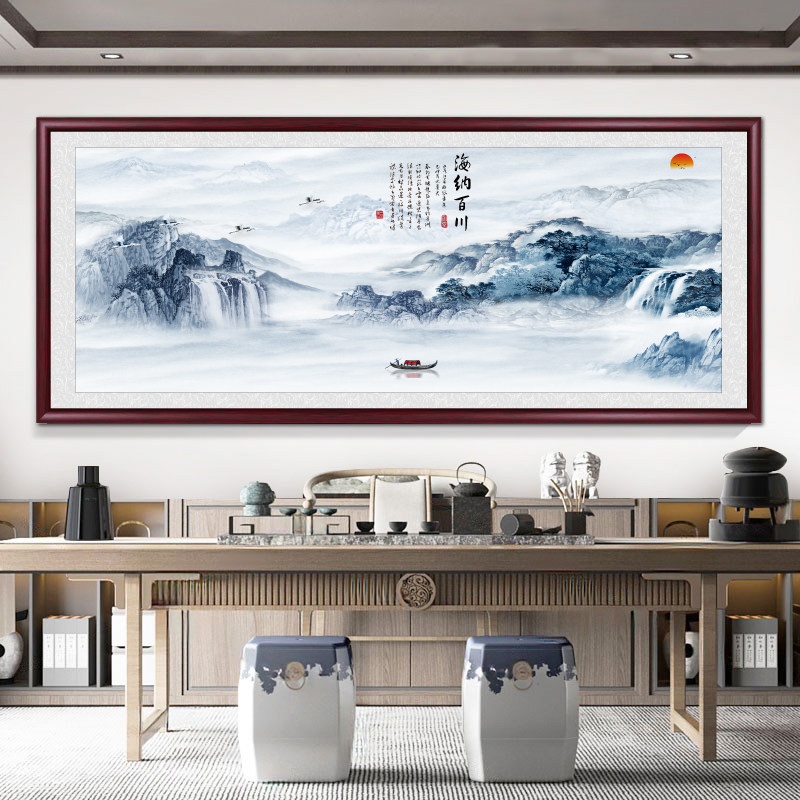 海纳百川山水画国画办公室挂画新中式客厅装饰画中堂画背景墙壁画