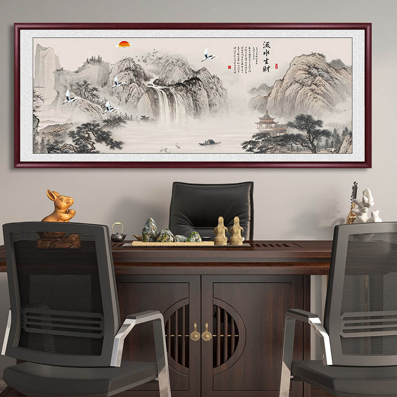 流水生财山水画客厅挂画办公室装饰画国画沙发背景墙壁画中式墙画