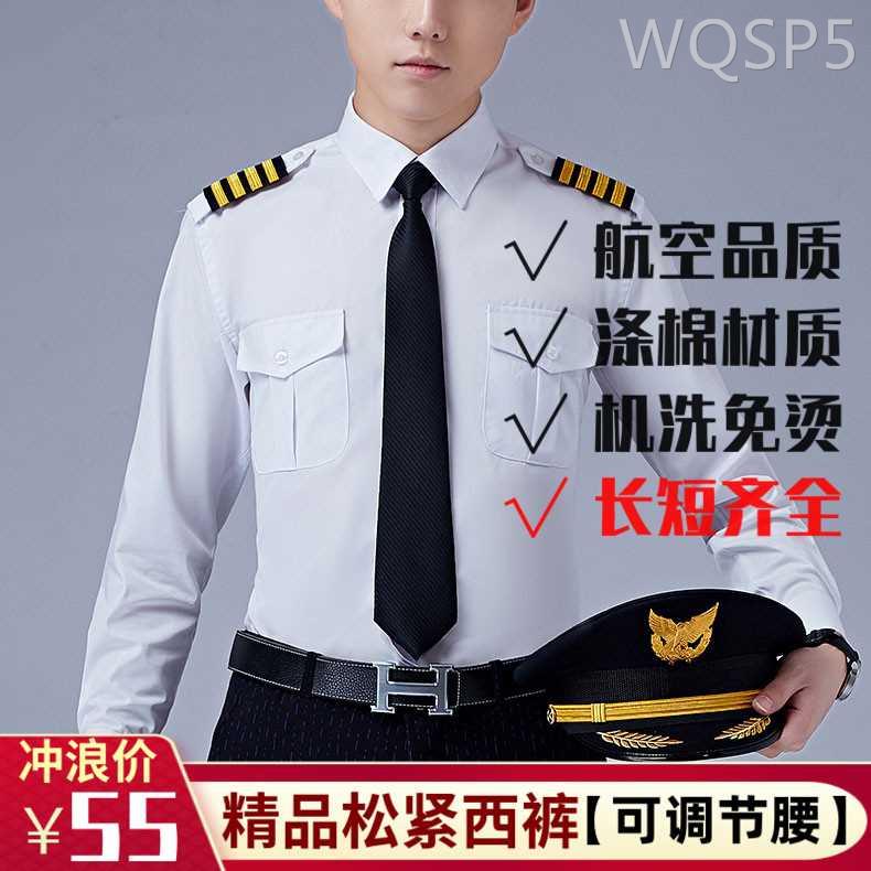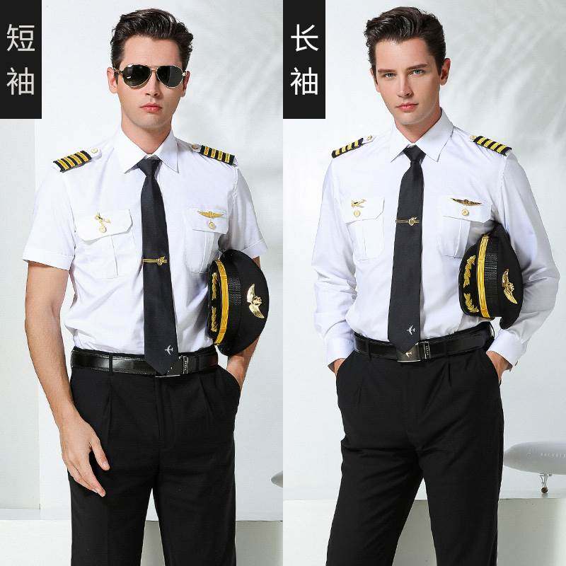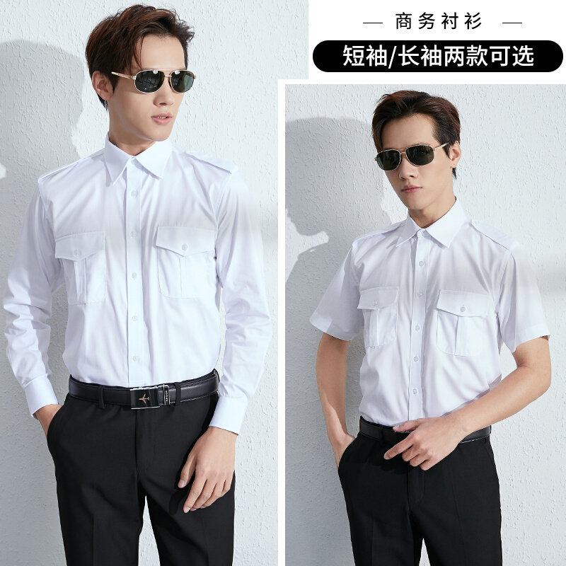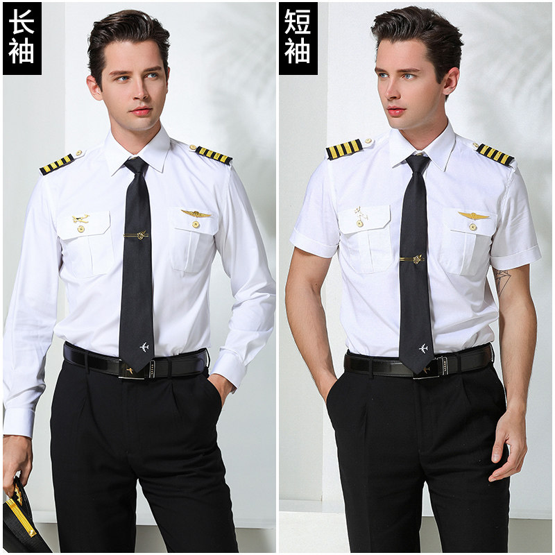 航空制服衬衫长袖男飞行员制服机长空少白色衬衣工作服棉职业工装