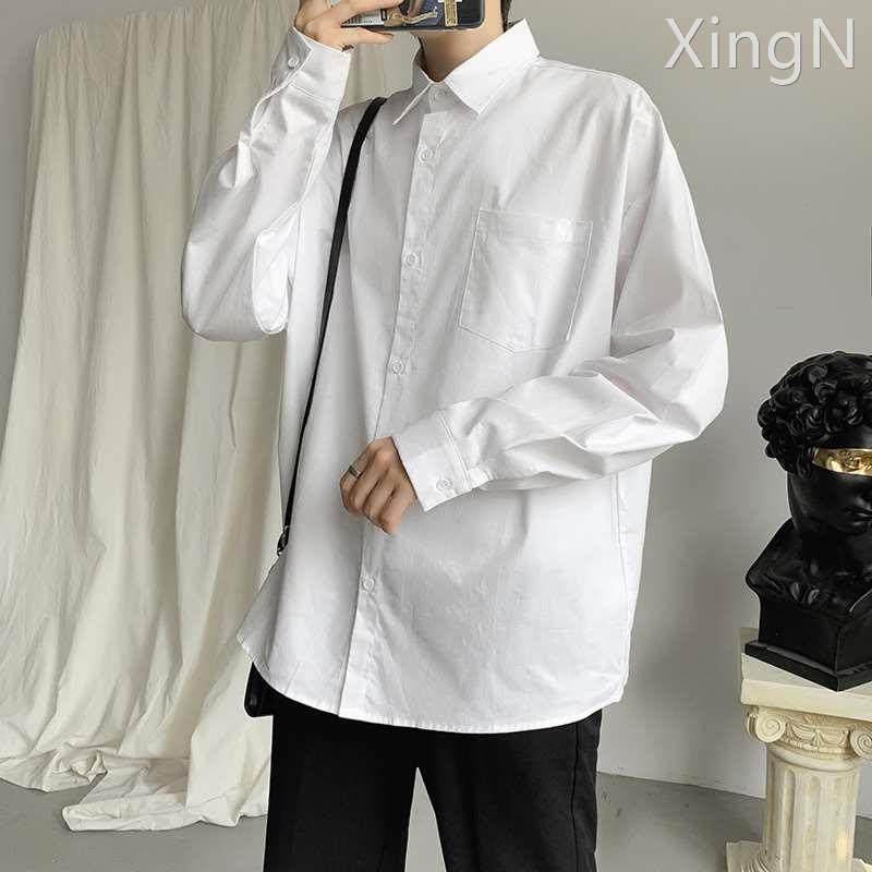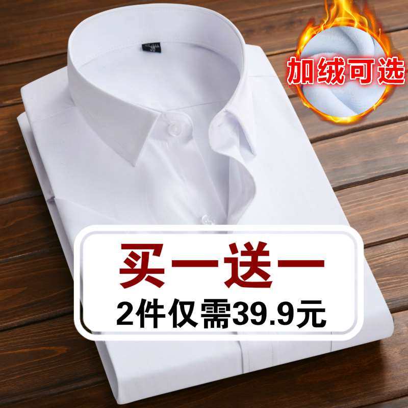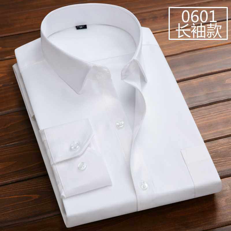 秋冬衬衫男白休闲纯色宽松休闲黑色长袖衬衣商务正装工作制服寸黑