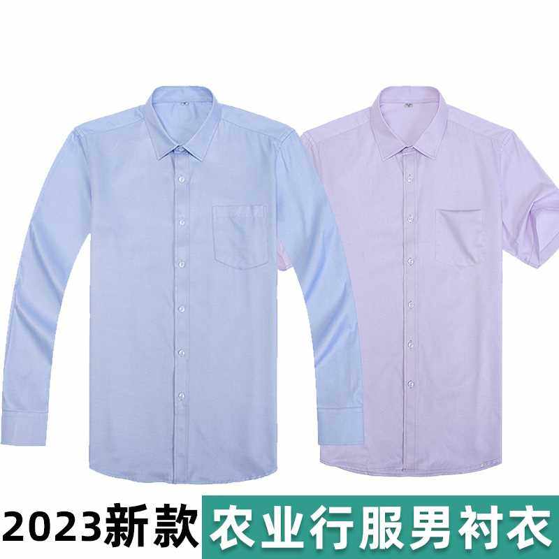 2024新款农行工作服男衬衫 农业行服银行长短袖蓝色衬衣工装制服