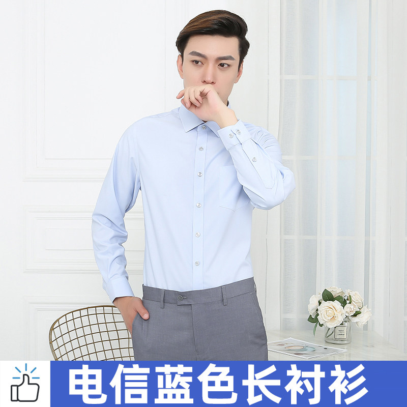 白衬衫男士建行工作服男商务正装职业装工装秋季长袖衬衣工装制服
