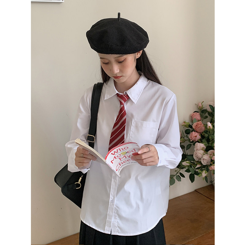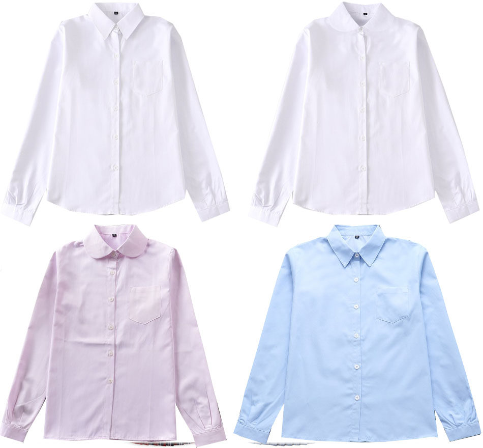 女长袖衬衫工作服白色蓝色粉色黑色JK校服班服尖领娃娃领学生制服