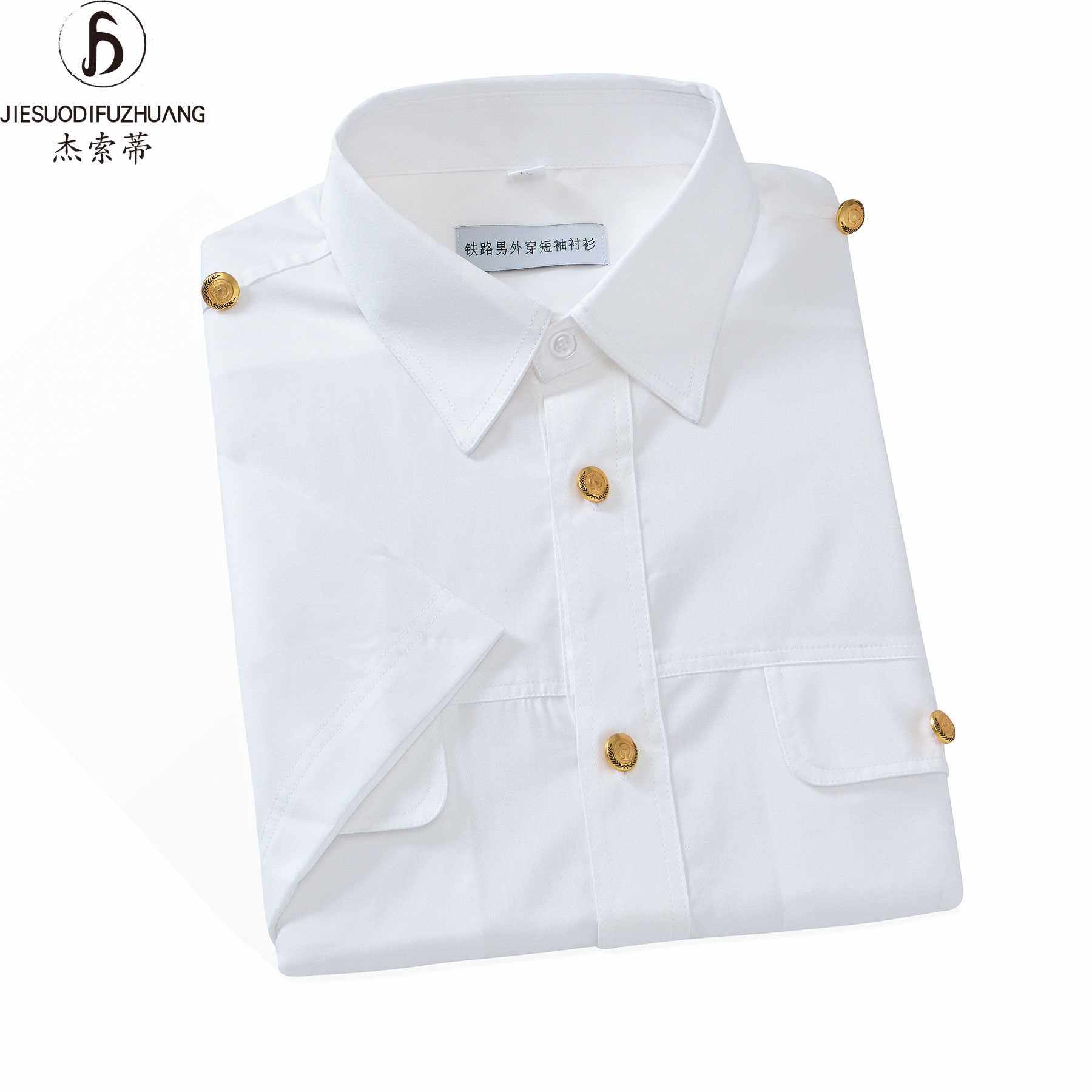 新款新式铁路衬衫制服蓝色路服铁路工作服男长段袖乘务员半袖衬衣