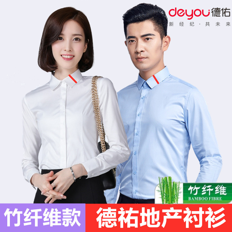 德佑地产衬衣竹纤维免烫衬衫德祐房产新工作服蓝白色制服寸衣新款