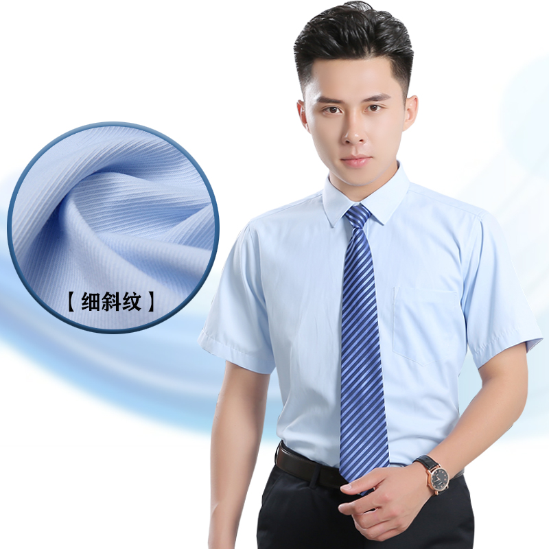 建行男士长袖衬衫蓝色细斜纹工作服行服职业工装制服面试正装衬衣