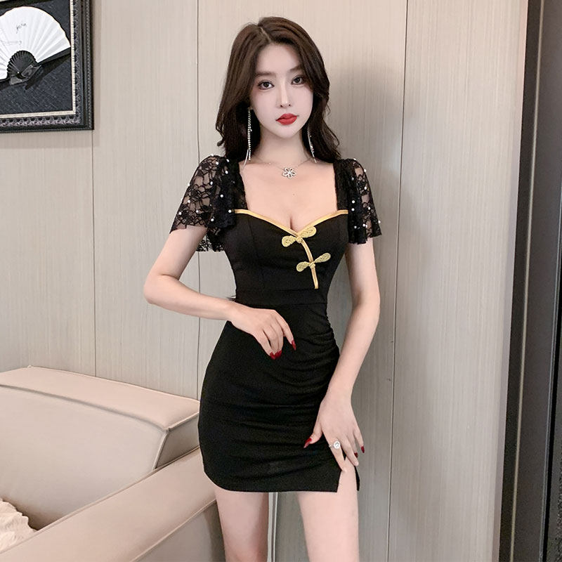情趣诱惑性感透视蕾丝高开叉旗袍透明制服夜场会所ktv洗浴工作服