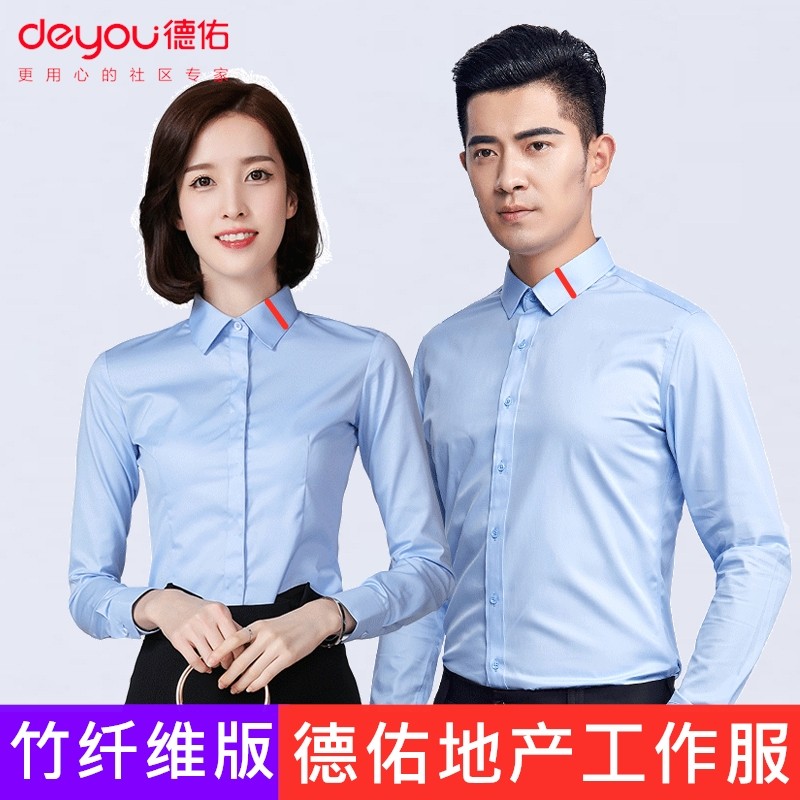 德佑新款竹纤维免烫职业衬衫德祐地产新工作服蓝色制服衬衣订做标