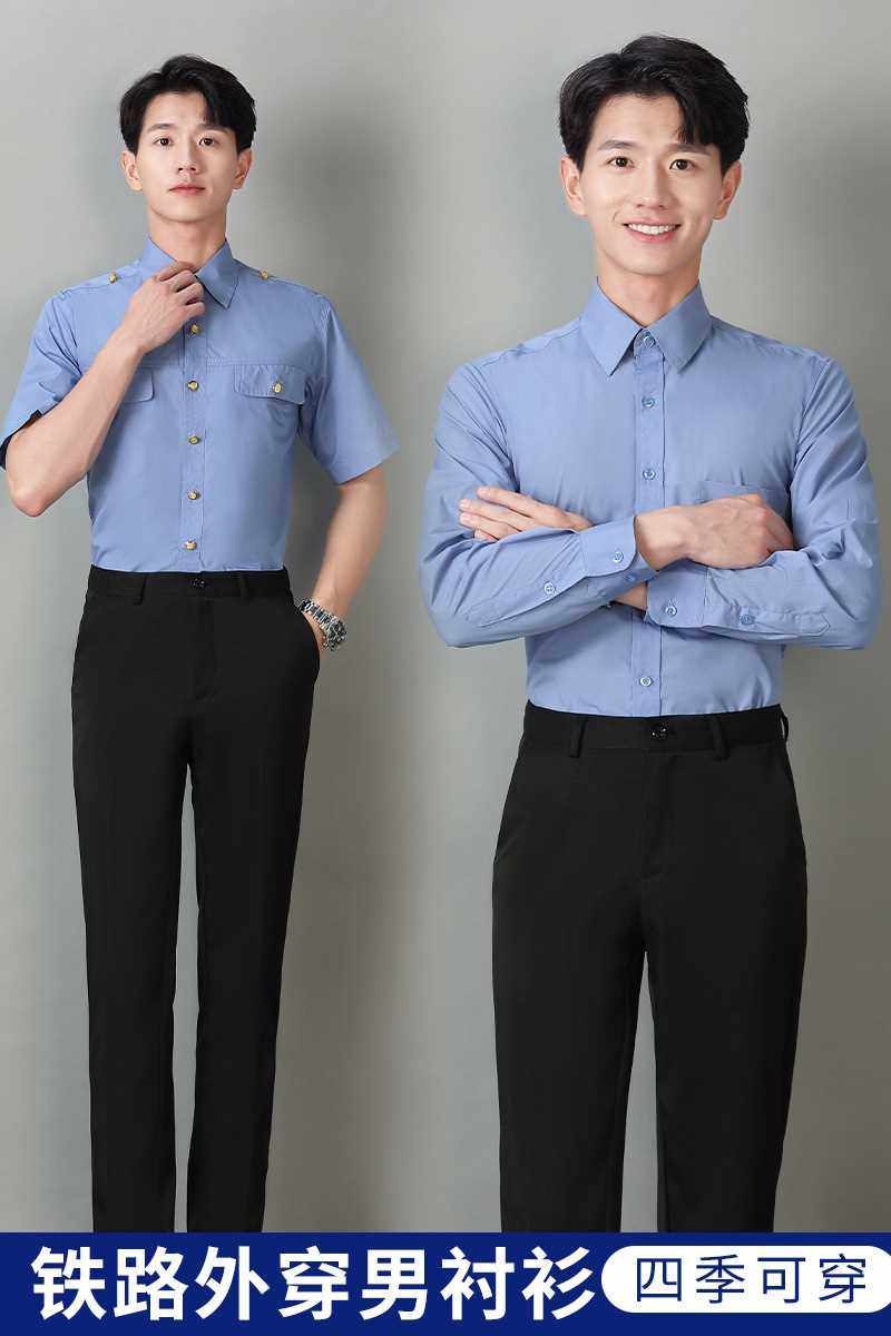 铁路制服男士衬衣短袖新款路服2023长袖蓝色衬衫工作服19式制服
