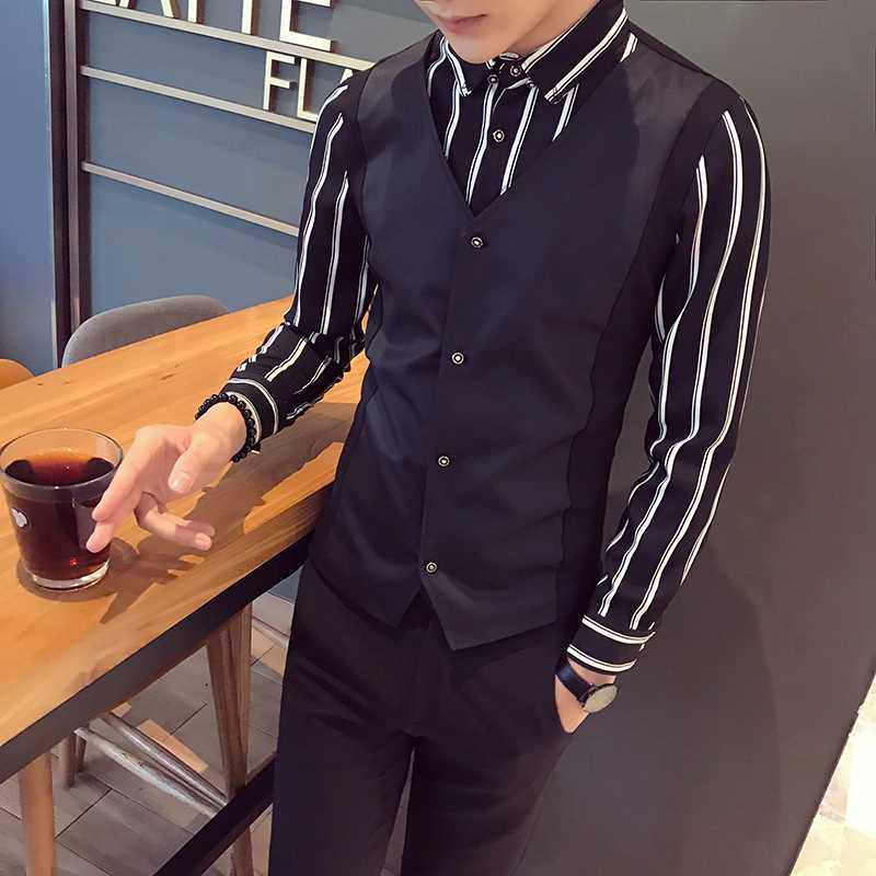高档男服务员工作服假两件马甲衬衫长袖套装夜店少爷会所制服酒吧