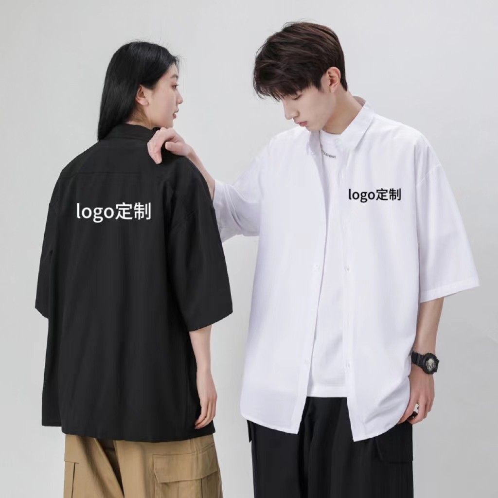 美发店发廊助理日式系工作服男女宽松免烫衬衫酒吧工衣LOGO定制服
