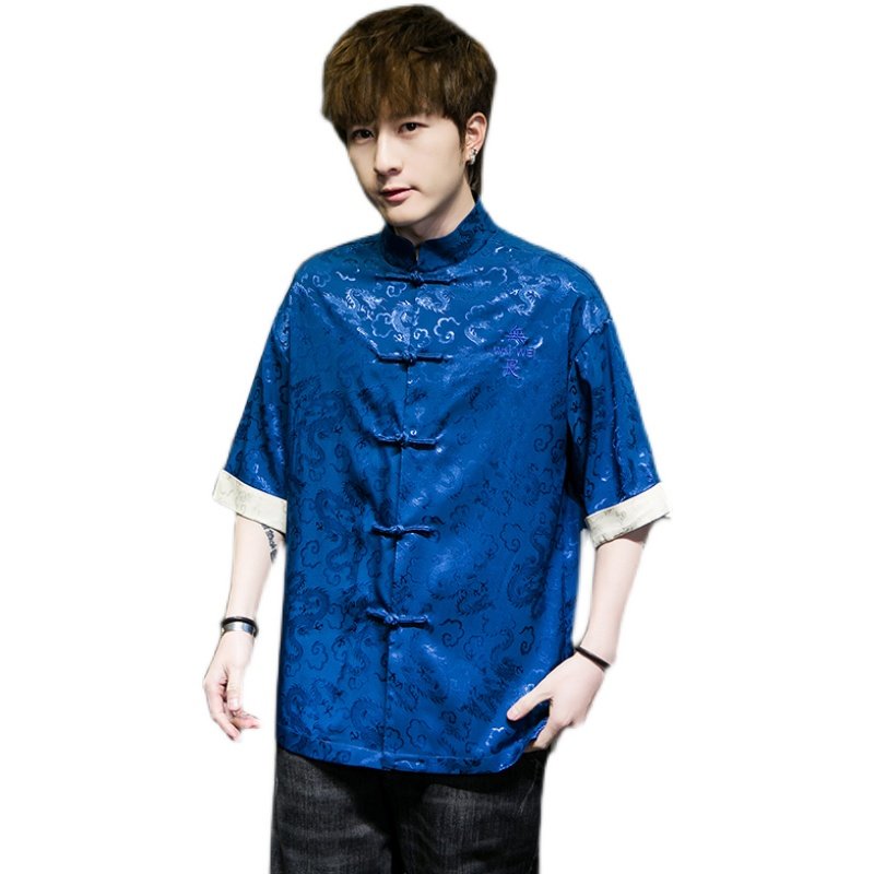 茶艺师工作服男唐装提花冰丝汉服中医养生馆保健师衬衫工装定制服
