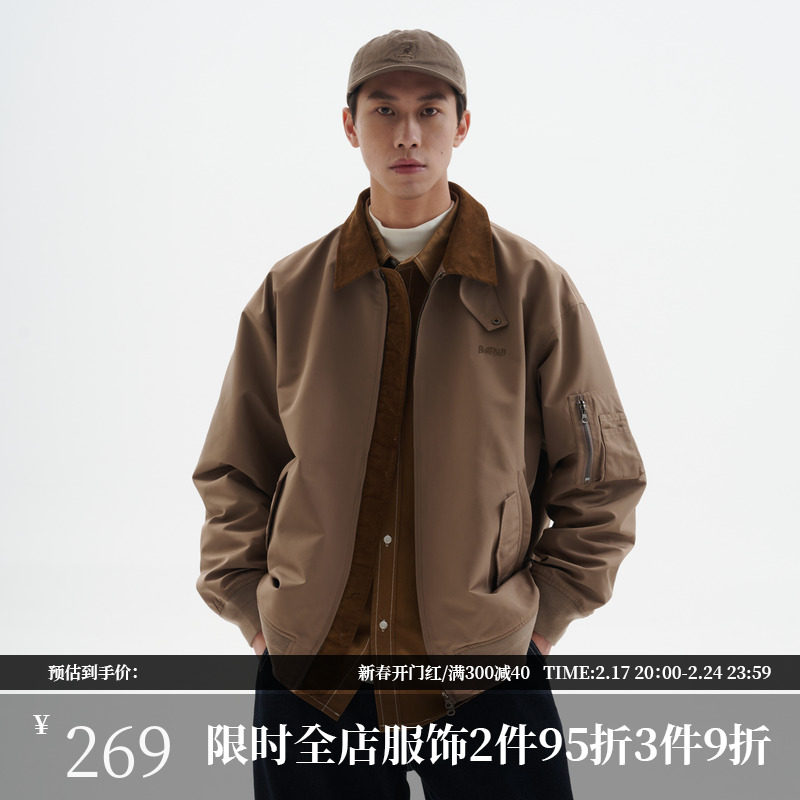 BUTTBILL 三防Teflon日系复古拉链棒球服飞行夹克灯芯绒外套男女