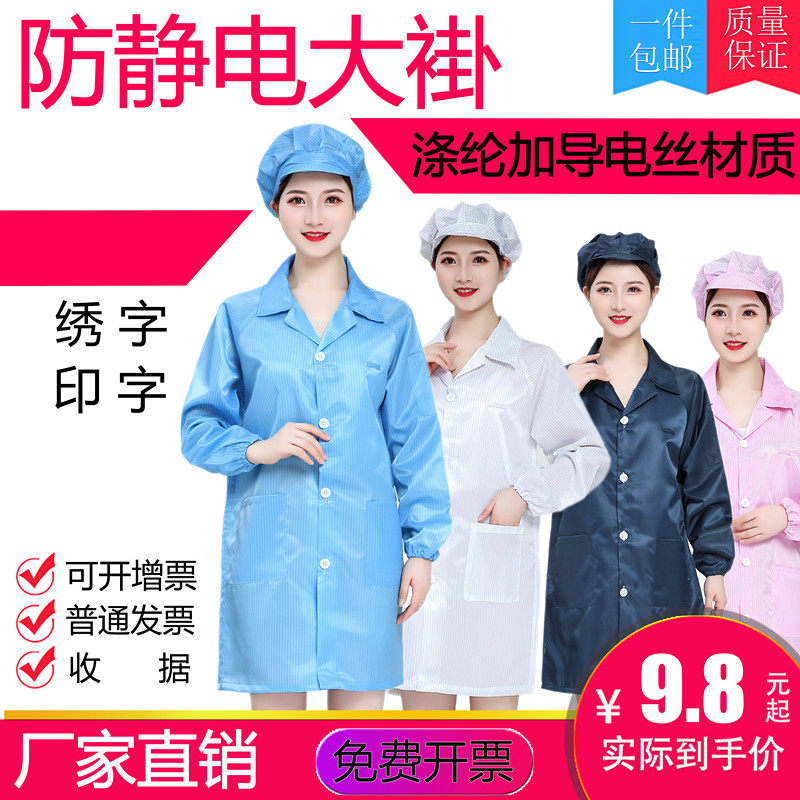 静电衣大褂防静电服无尘工作服防尘服大褂长款男女白色蓝色洁净服