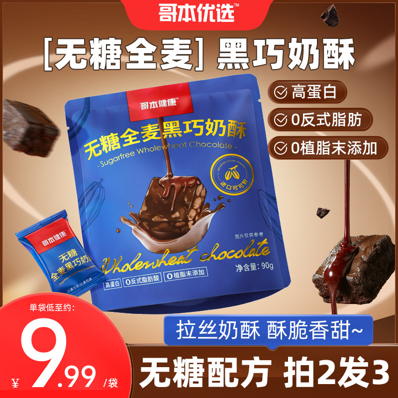 哥本优选奶酥黑巧克力饼干低减卡零食脂无糖全麦可可牛轧糖雪花酥