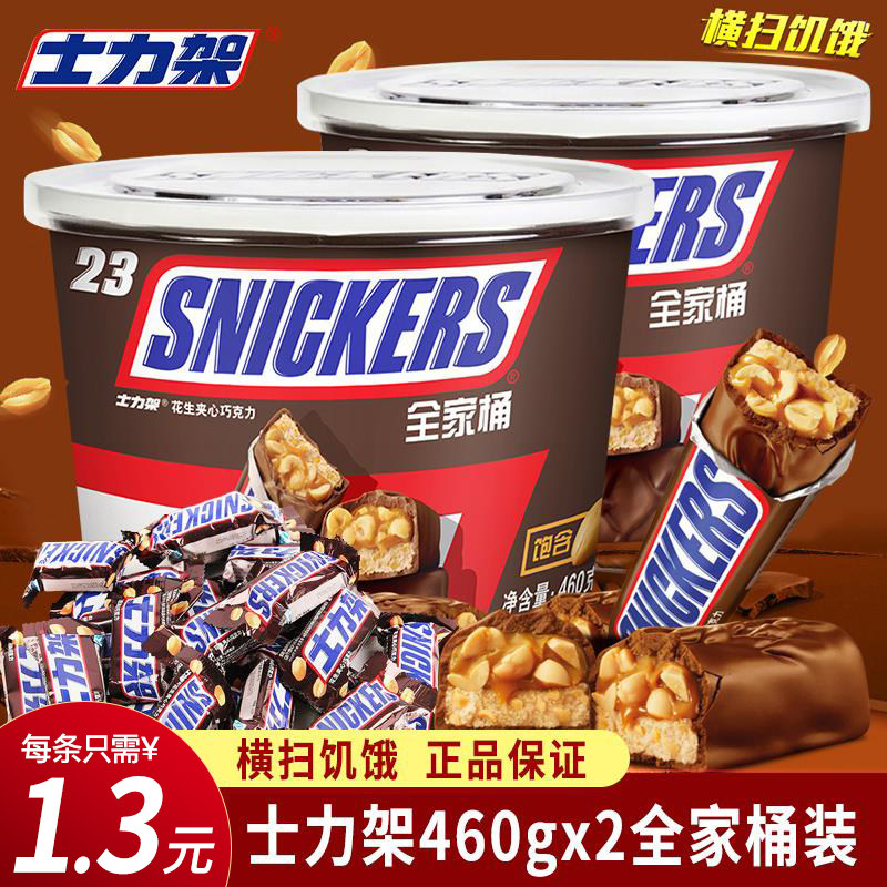 德芙士力架花生夹心巧克力460g全家桶装休闲小零食喜糖果散装批发