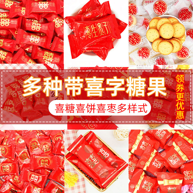 喜糖结婚糖果饼干巧克力红色喜字糖散装批发婚庆满月订婚糖喜庆