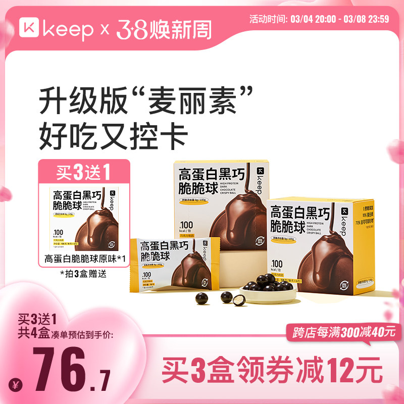 Keep高蛋白黑巧脆脆球麦丽素纯可可脂巧克力