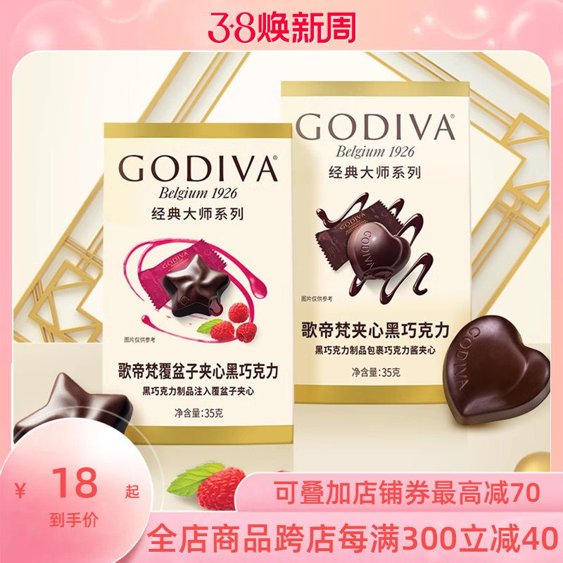 GODIVA歌帝梵覆盆子夹心经典大师黑巧克力35g伴手礼进口零食5颗装