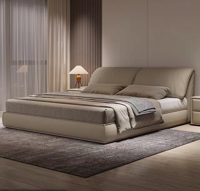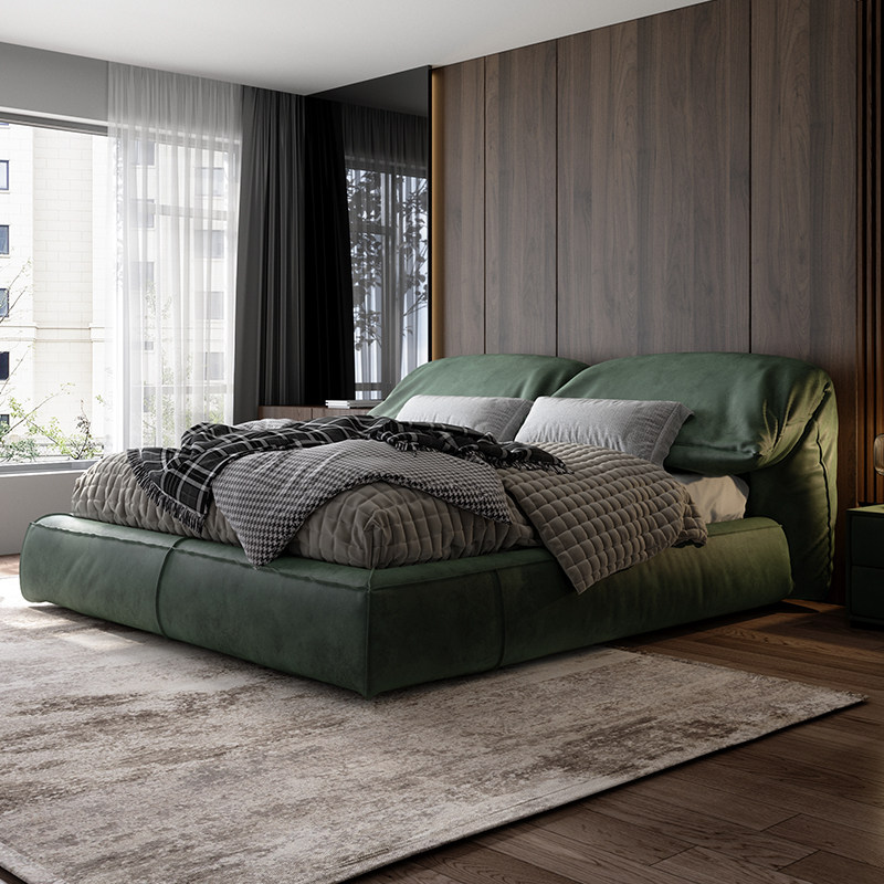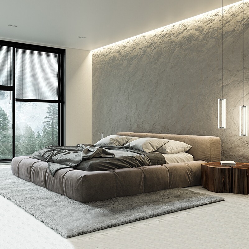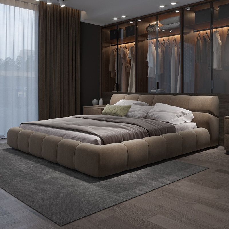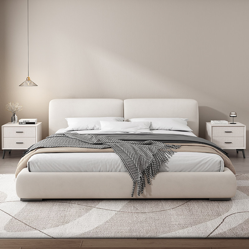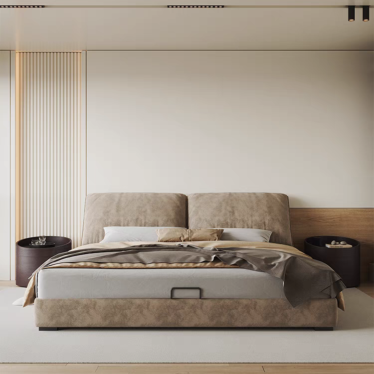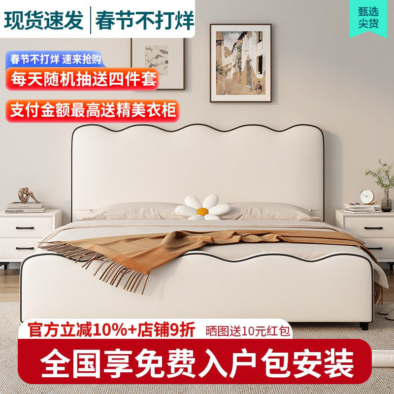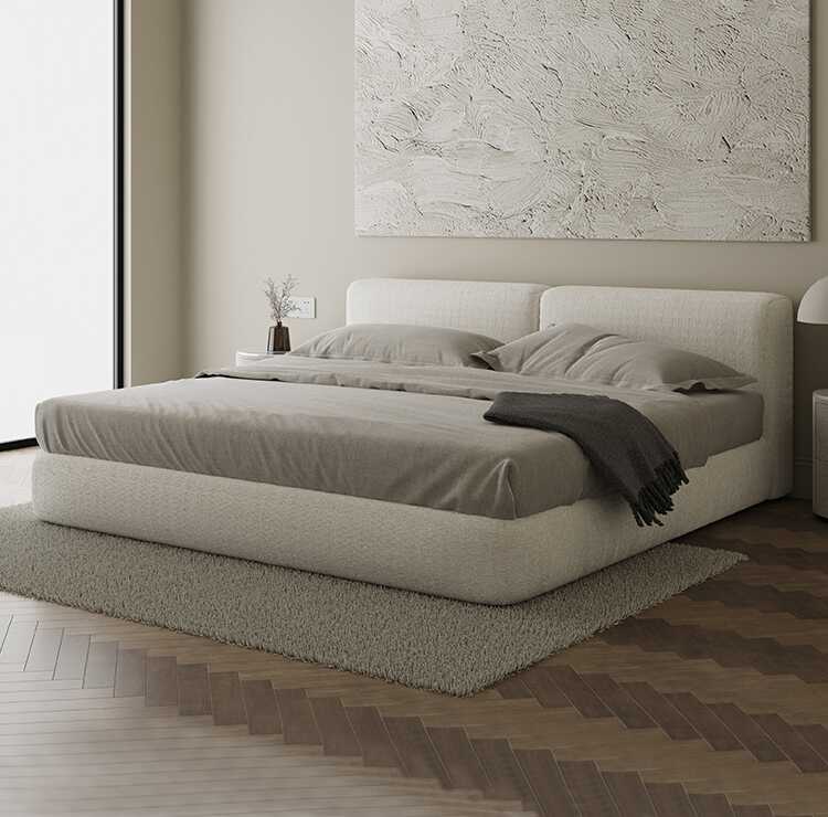 侘寂风仙女床云朵布艺床意式极简磨砂绒防猫抓布法式奶油风双人床