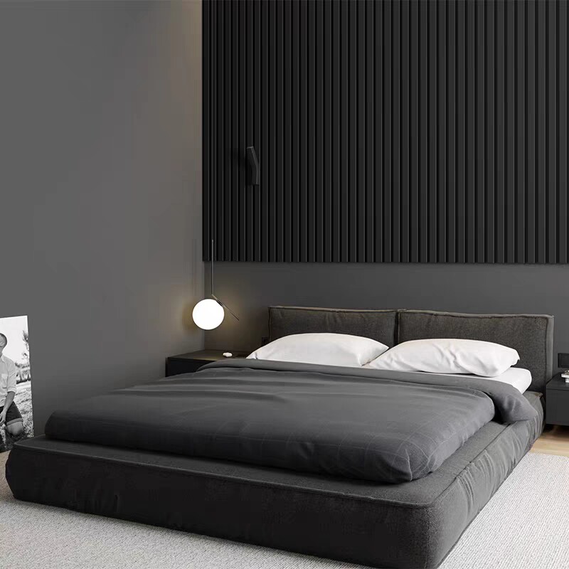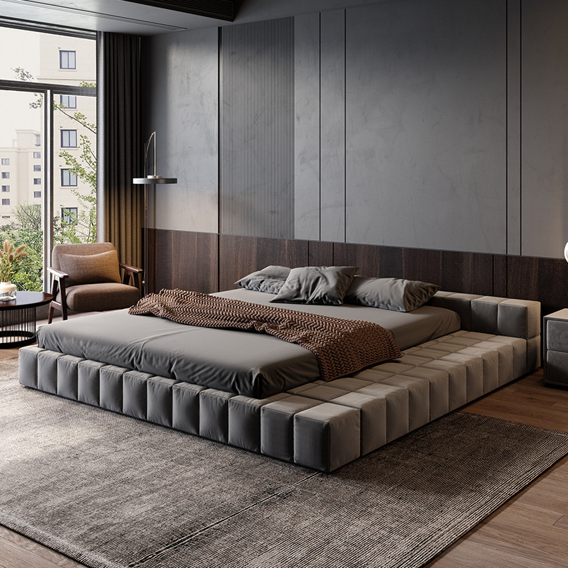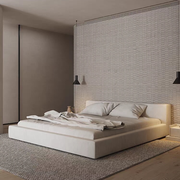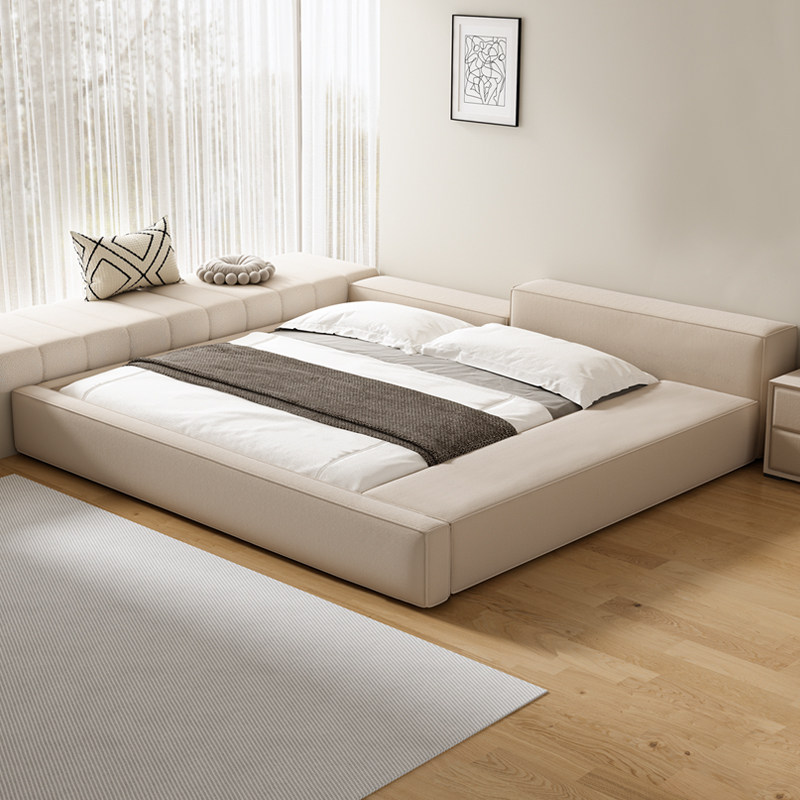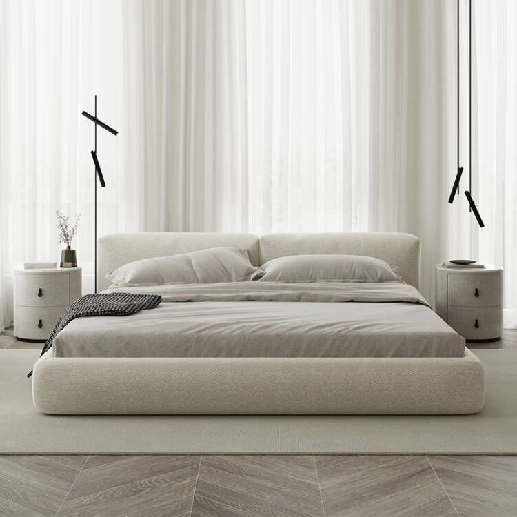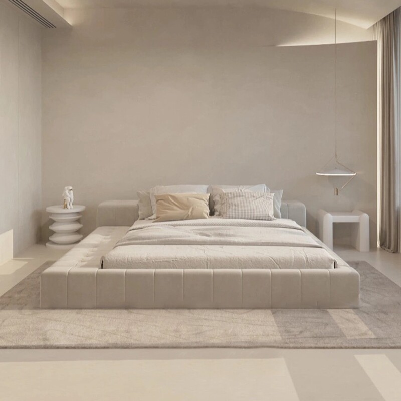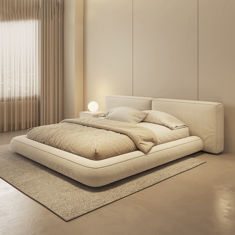 意式极简猫抓布科技布榻榻米落地矮床轻奢主卧大床布艺侘寂奶油风