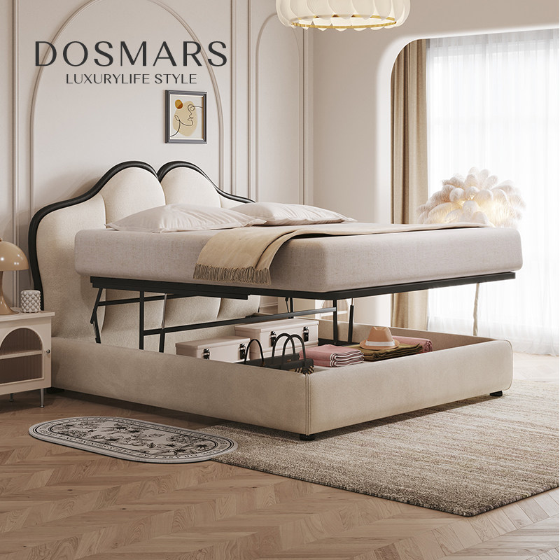 大司马 法式轻奢奶油风高箱储物床小户型布艺双人床软包花瓣床