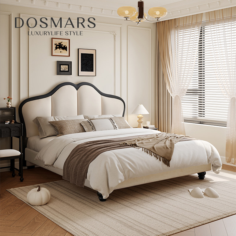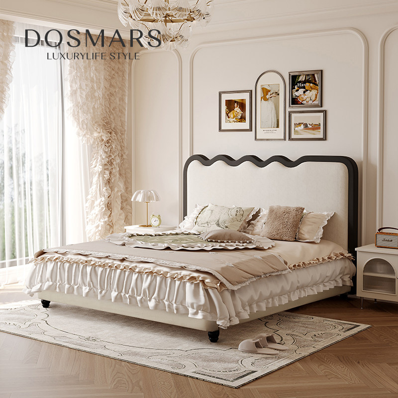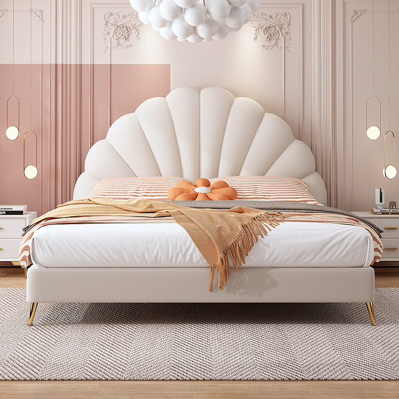 法式轻奢复古花瓣床女生卧室白色奶油风主卧大床猫抓布贝壳布艺床