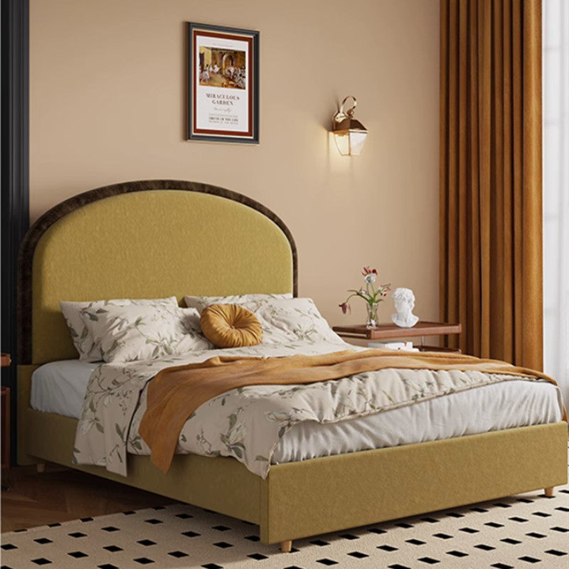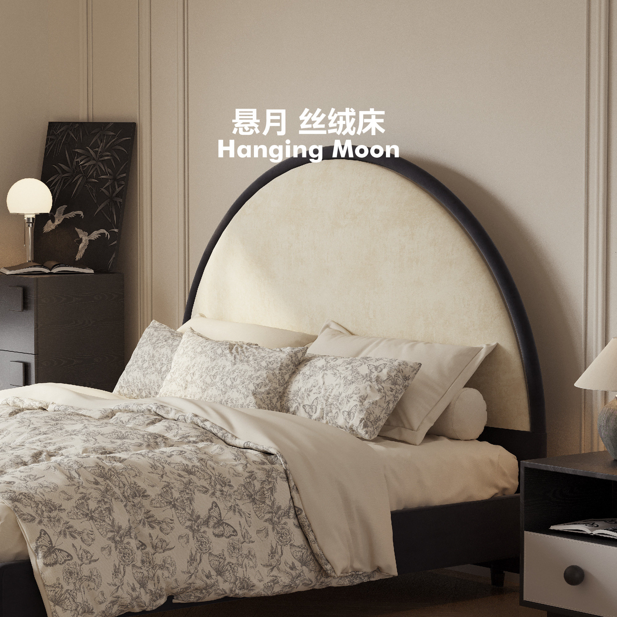 溪林岚所悬月丝绒床布艺床双人法式卧室黑色侘寂风网红复古风圆形