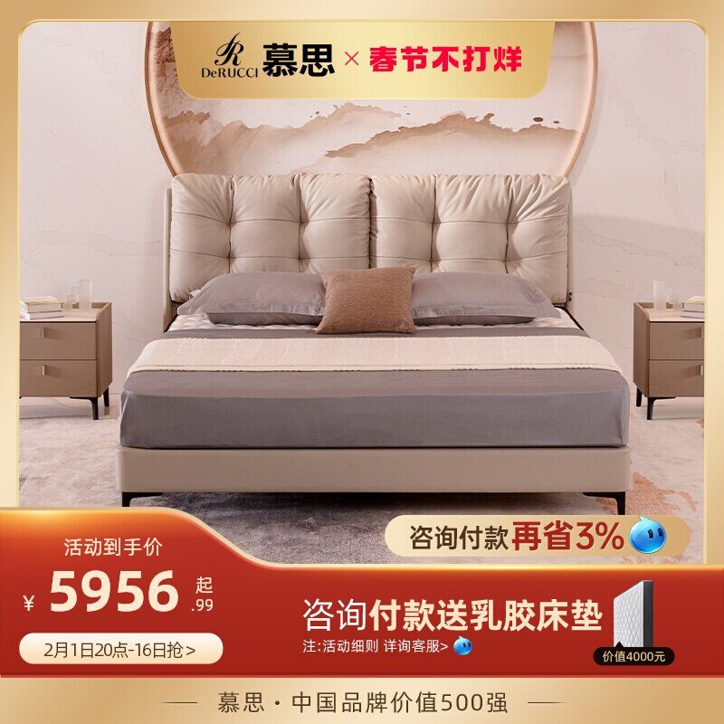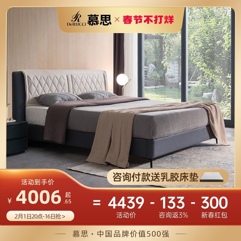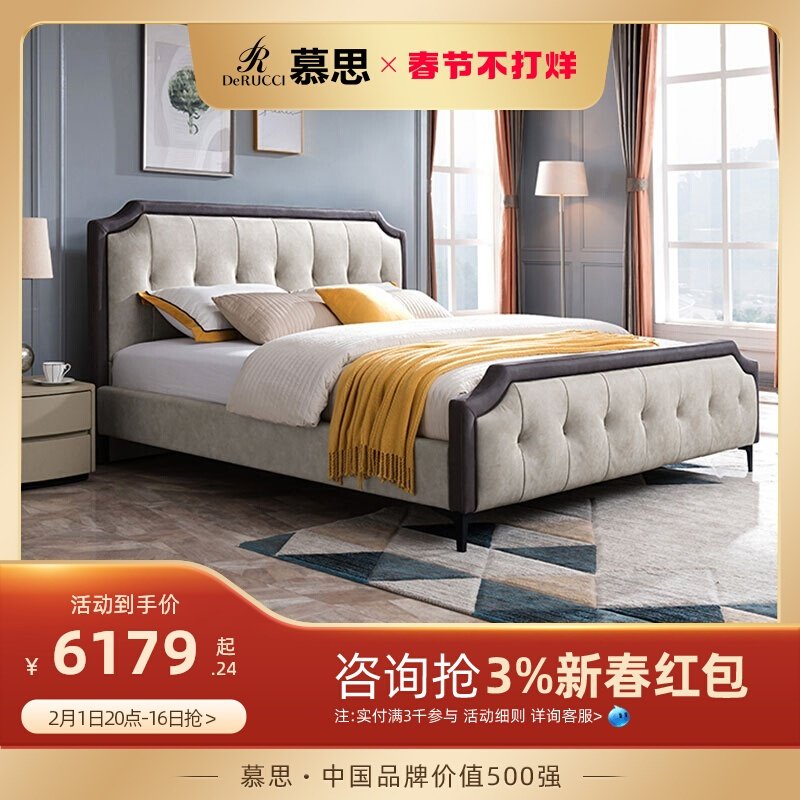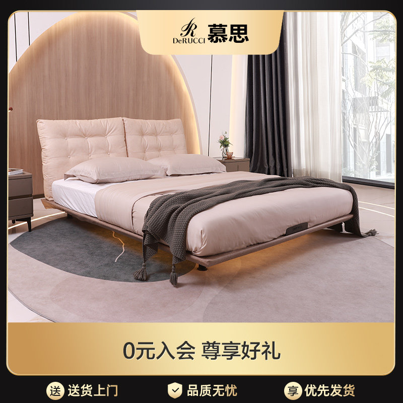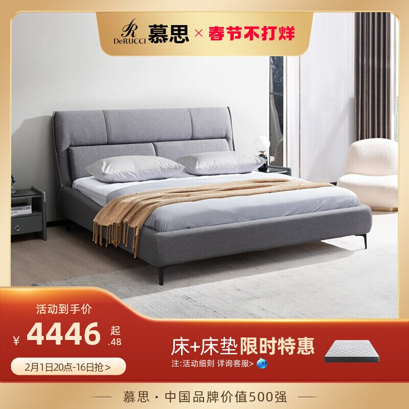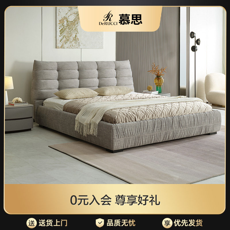 慕思简约现代布艺床网红床ins卧室床北欧布艺床双人主卧大床