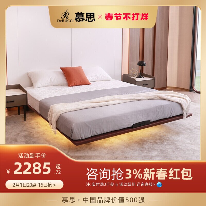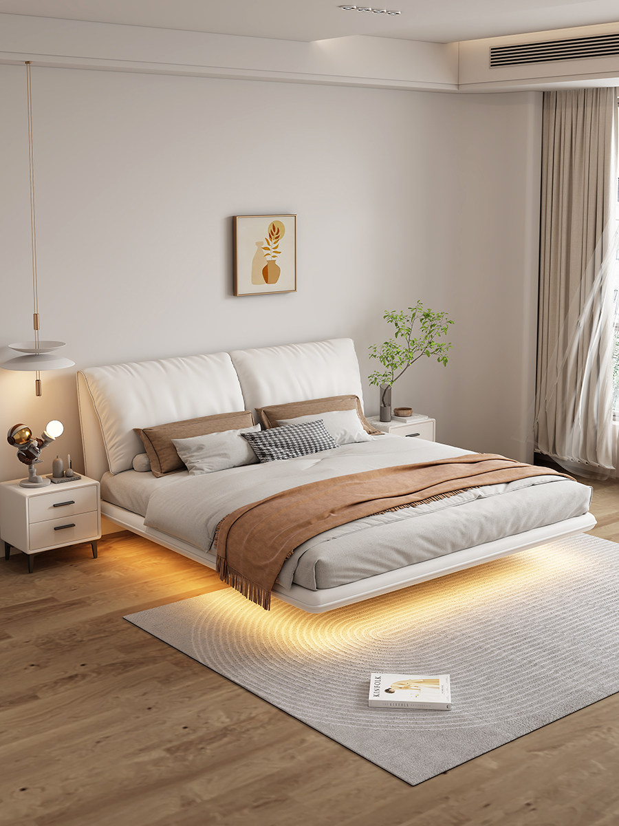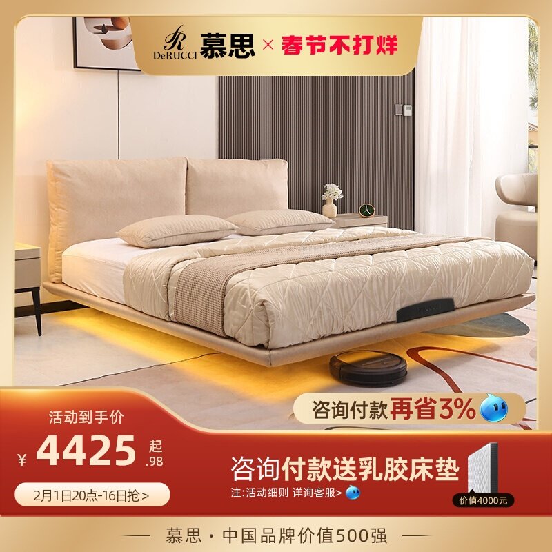 源氏木语官方旗舰店意式极简悬浮床科技布艺双人床轻奢现代简约主